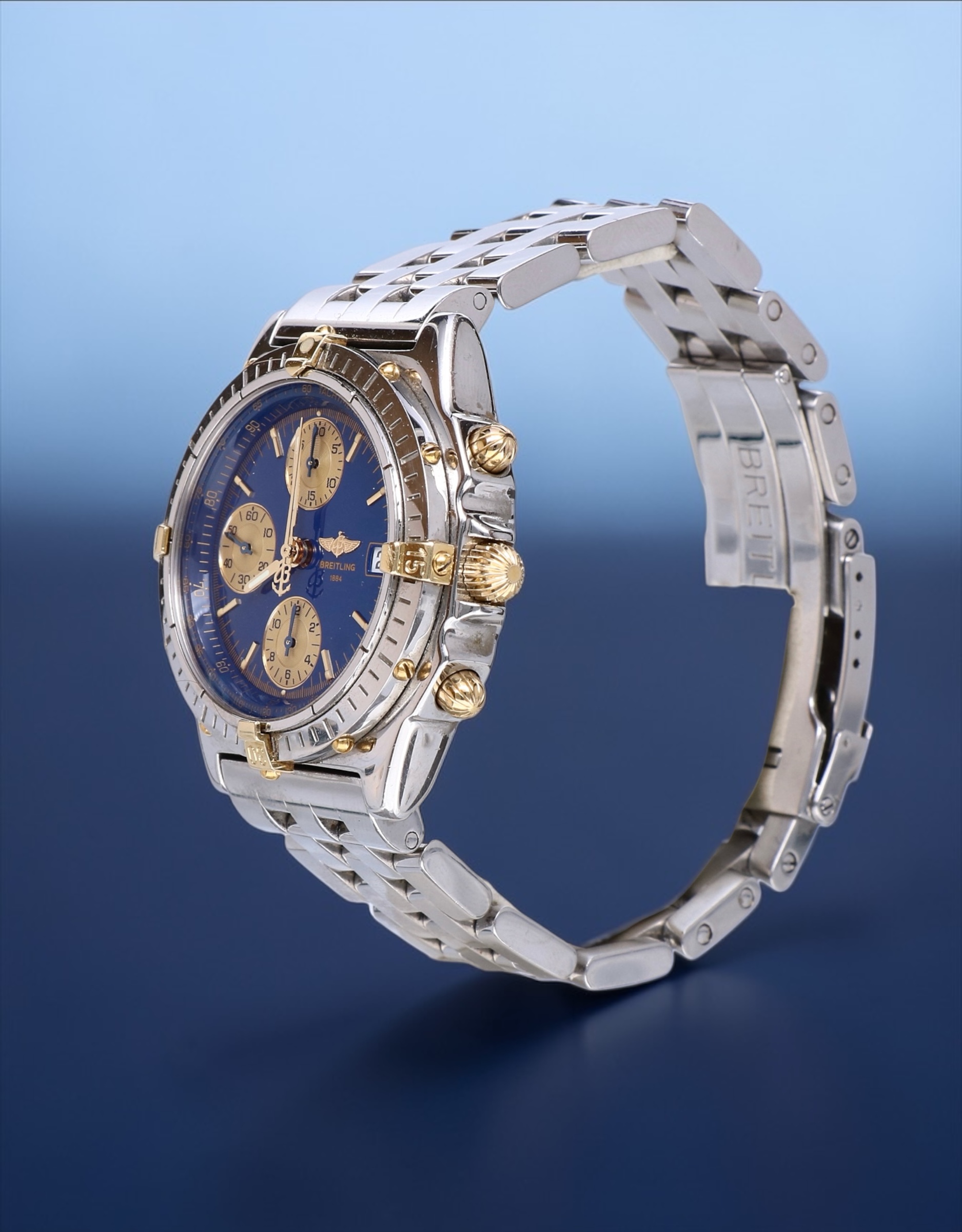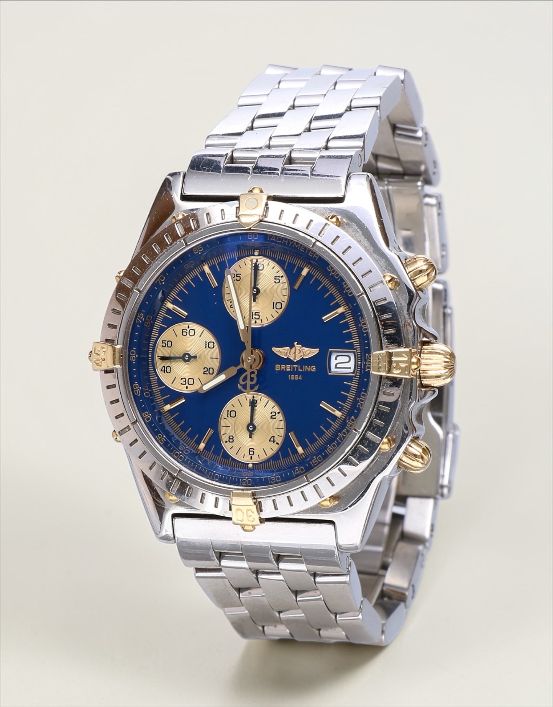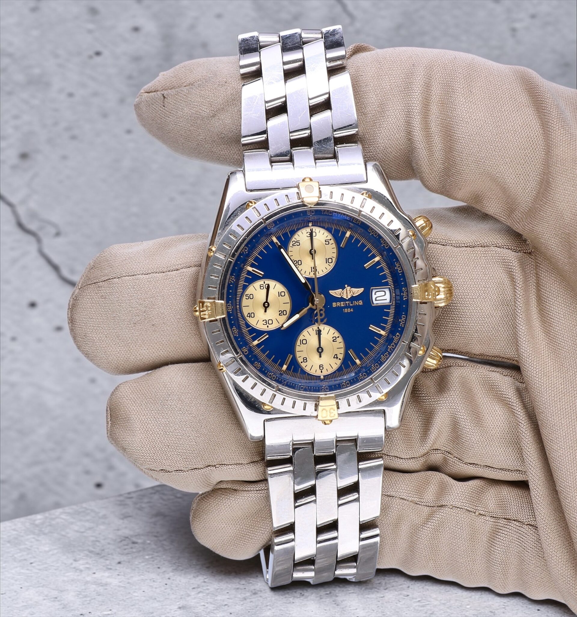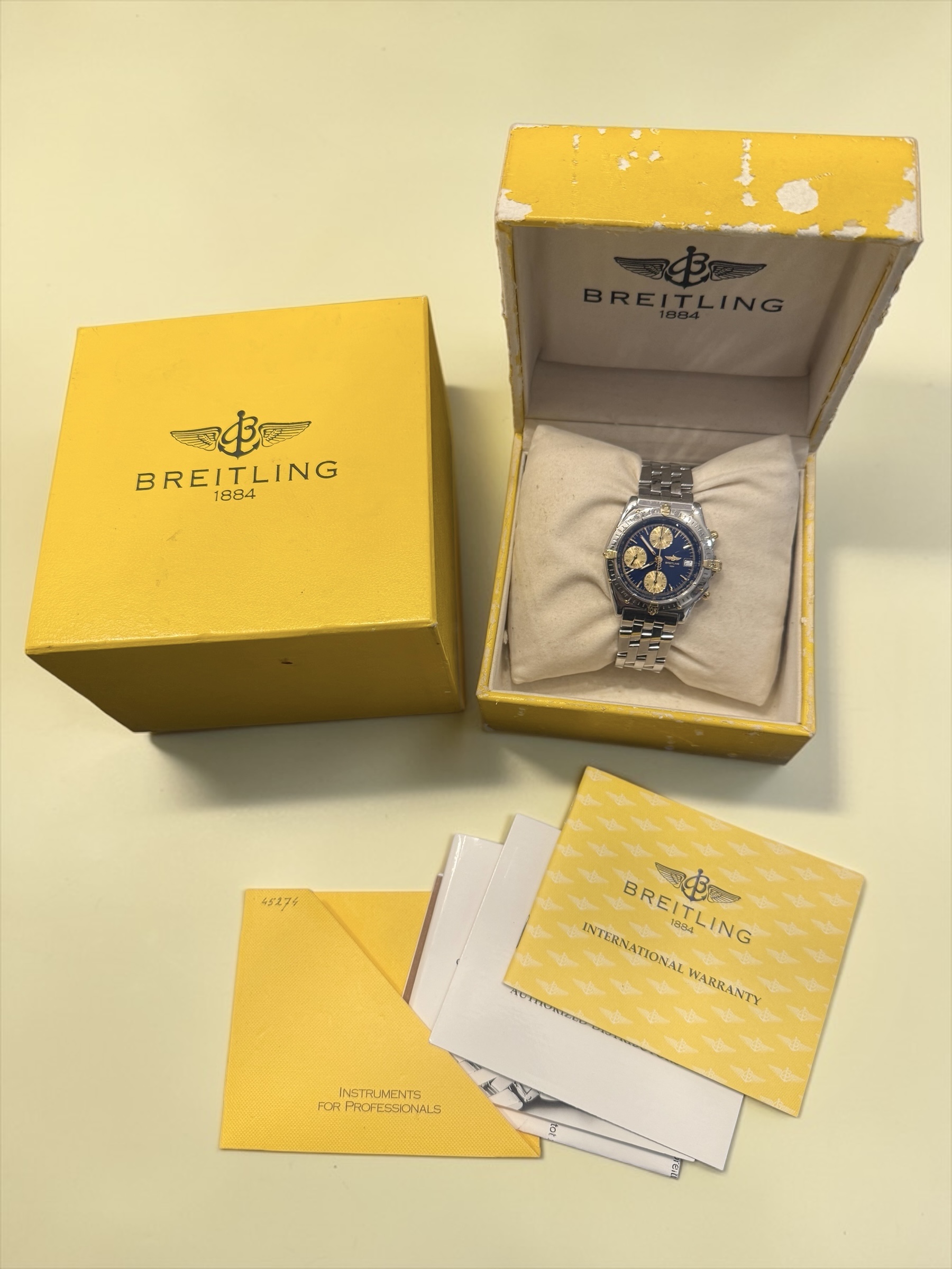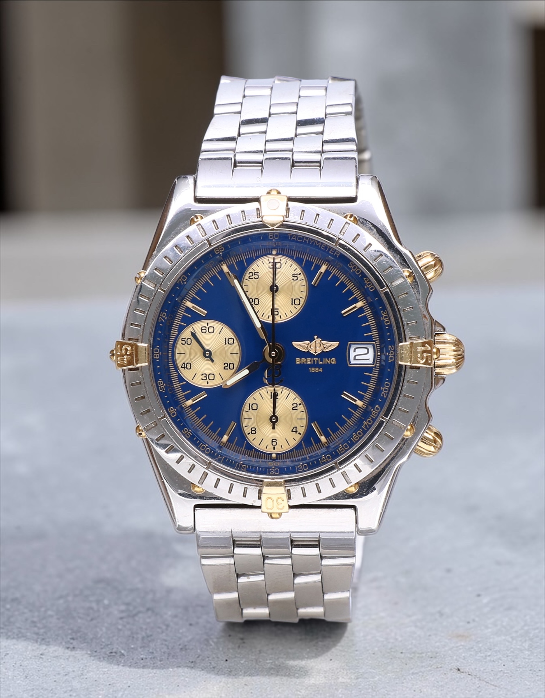 B13050.1 Breitling Chronomat Pilot Gold Steel Blue Dial 39 mm // Full Set 1996