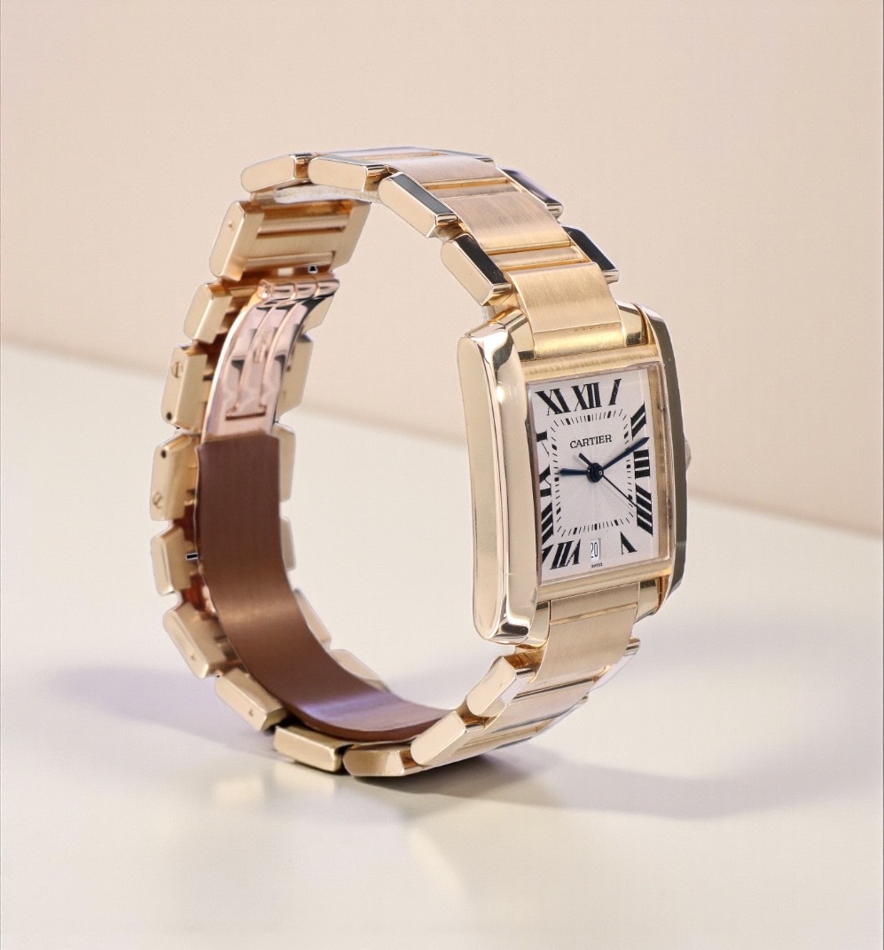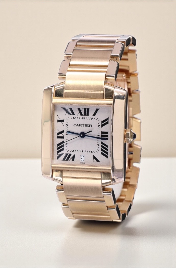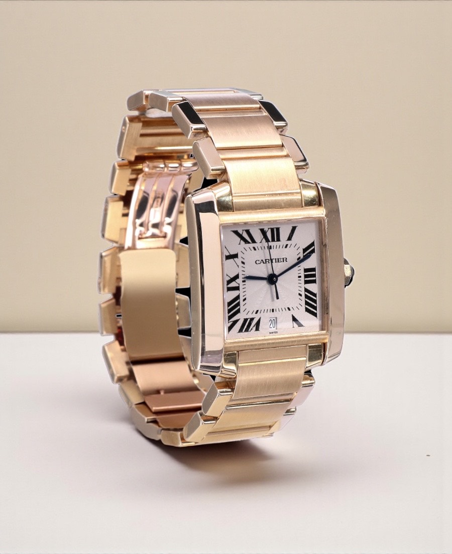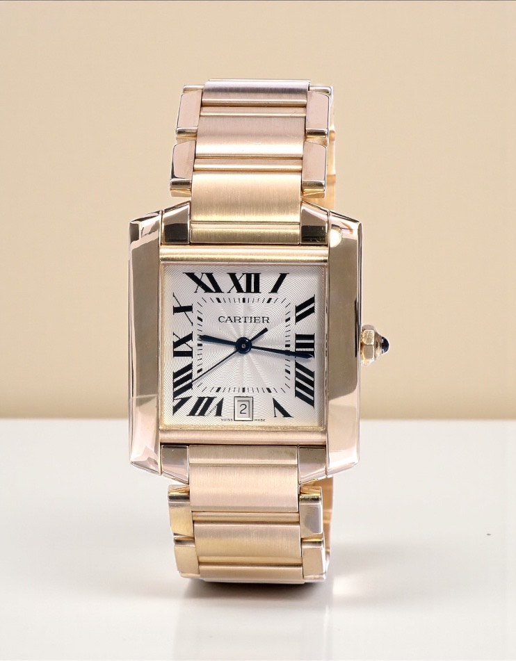 1840 Cartier Tank Francaise Large Yellow Gold White Guilloche Dial 28 x 32 mm // 18 KRT