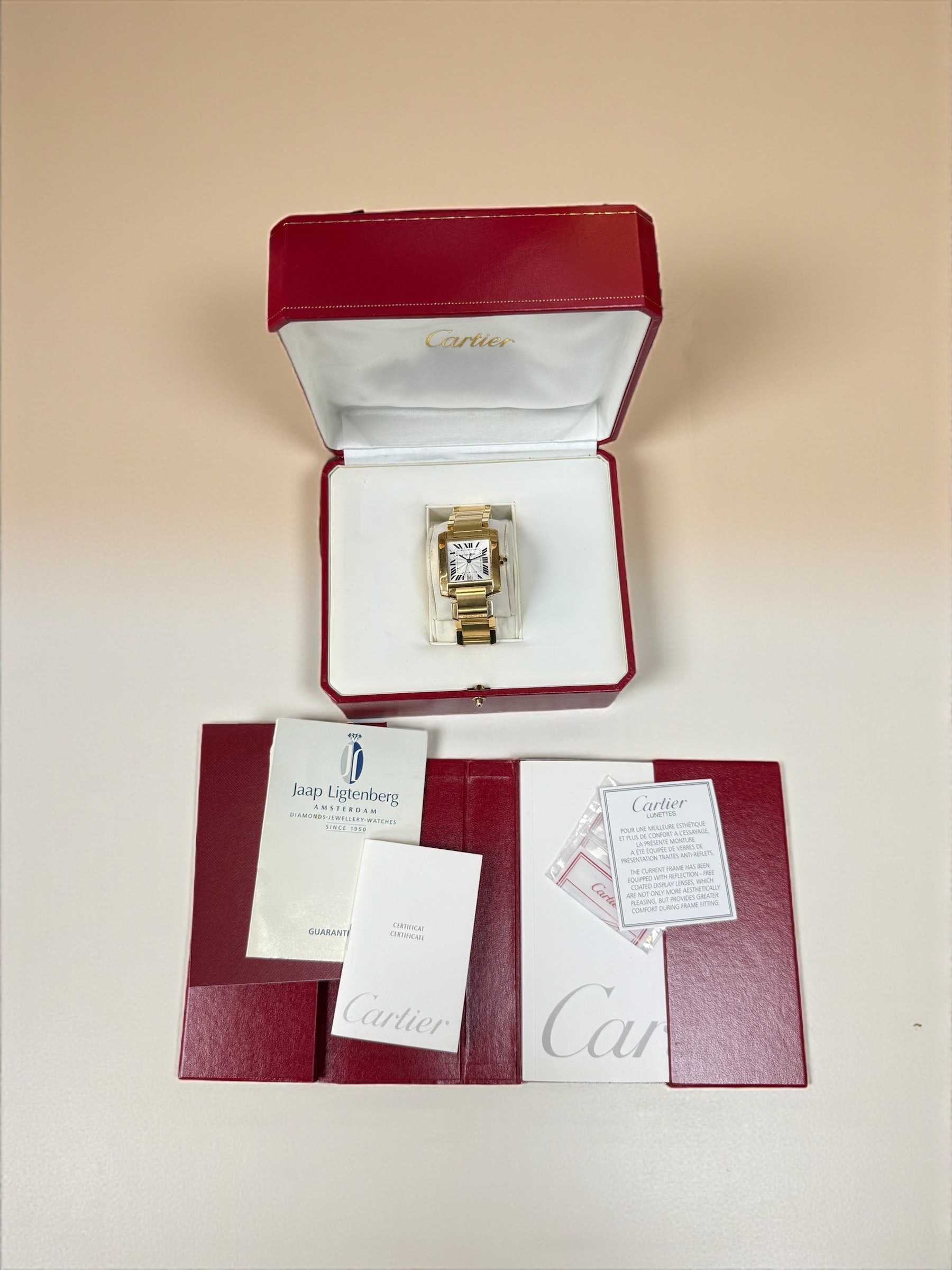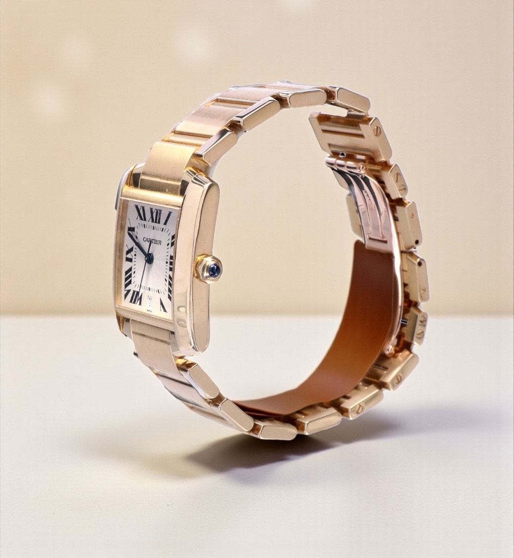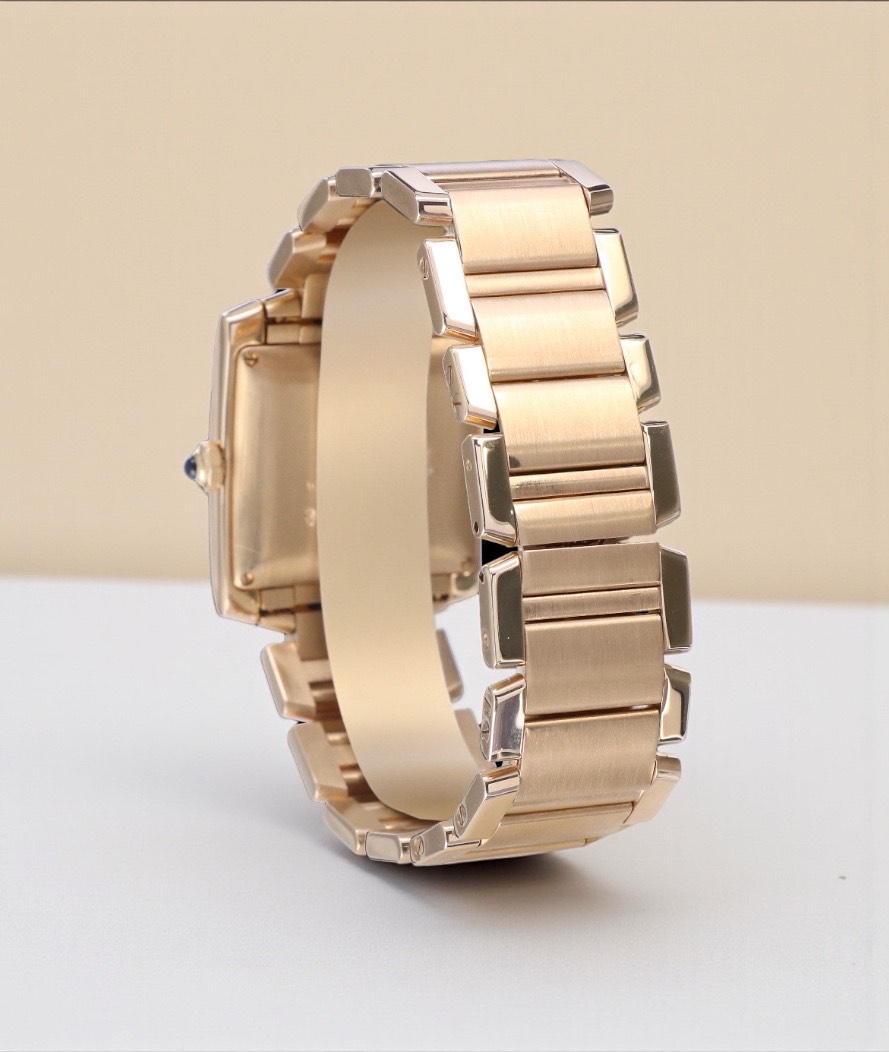 1840 Cartier Tank Francaise Large Yellow Gold White Guilloche Dial 28 x 32 mm // 18 KRT