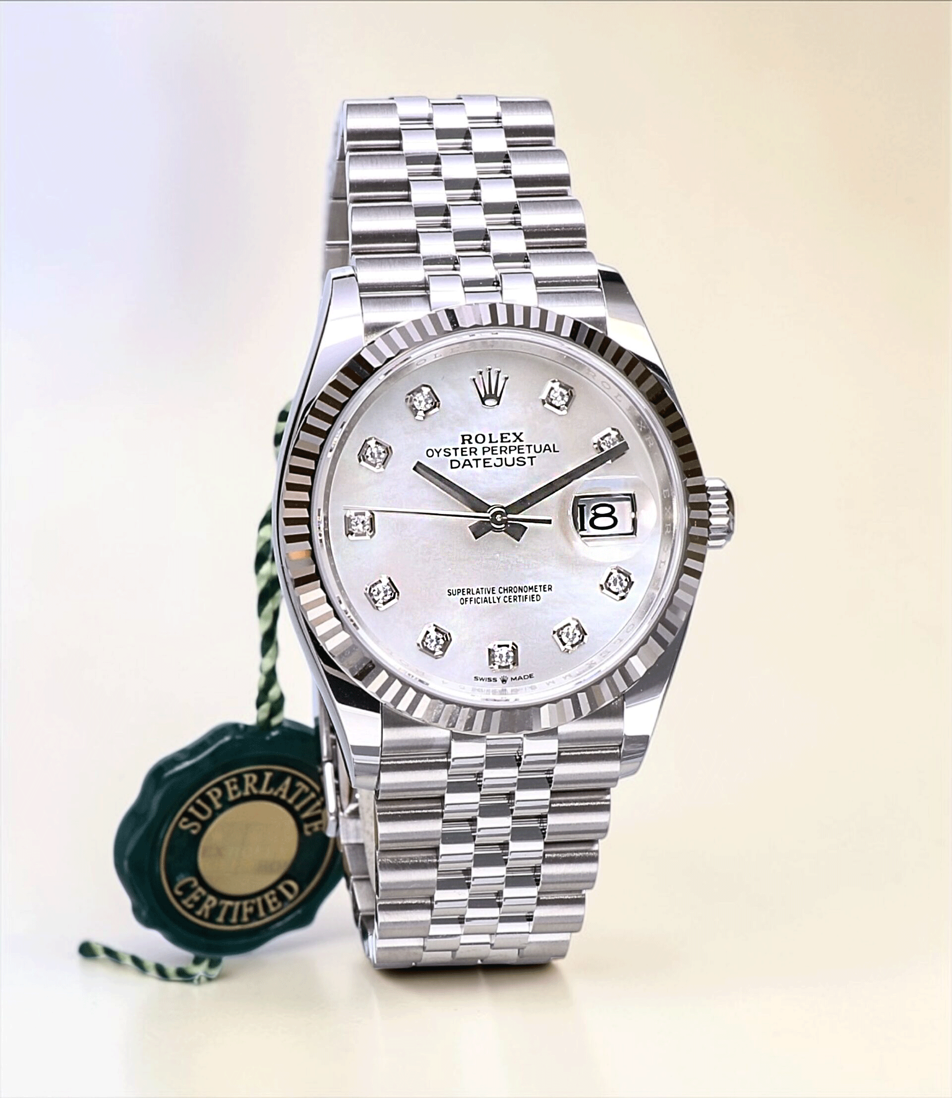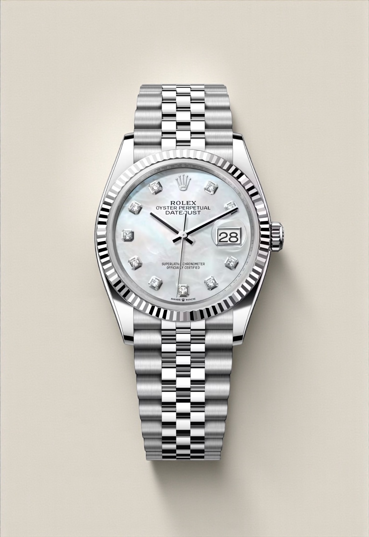 126234 Rolex Datejust Jubilee Steel Mother of Pearl Diamond Dial 36 mm // UNWORN 2026